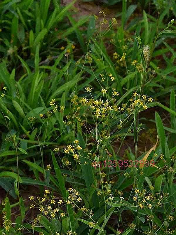 它叶片像竹叶,茎秆笔直,夏天开出伞状小黄花,花谢后结出小芝麻似的果子。