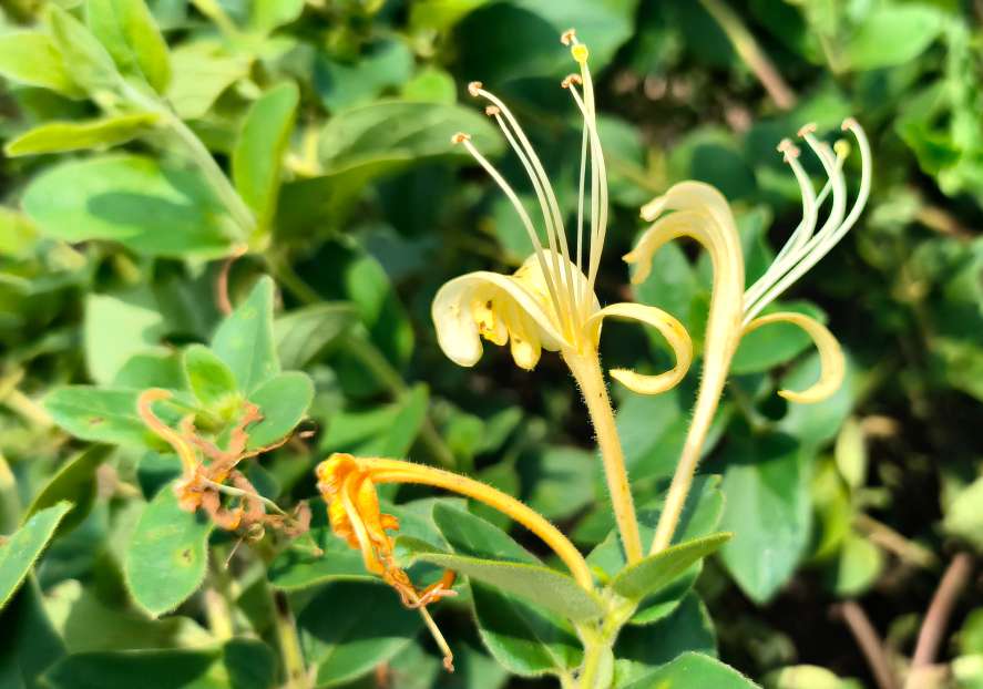 而 “金银花” 这个名字,则是从明代开始被大家熟知。李时珍在《本草纲目》中详细记载:“忍冬处处有之。附树延蔓,茎微紫色,对节生叶…… 三四月开花,长寸许,一蒂两花二瓣,一大一小,如半边状,长蕊。花初开者蕊瓣俱白色,经二三日,则色变黄。新旧相参,黄白相映,故呼金银花,气甚芬芳。” 他用生动的笔触,描绘出忍冬花从白色到黄色的转变过程,就像把金银两种珍贵的金属巧妙地融合在了一起,从此 “金银花” 这个美丽的名字就被人们用来称呼它,一直沿用至今。