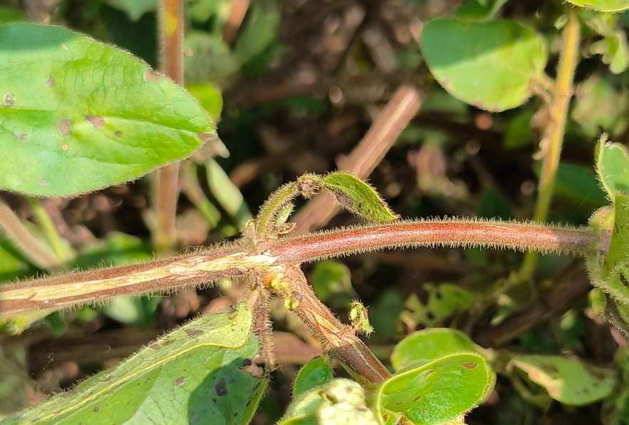 叶片,叶纸质,一般有披针形和卵形,边缘有粗糙的绒毛,上面深绿色,下面淡绿色。